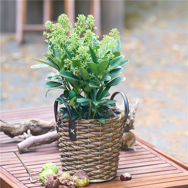 Die Skimmie (Skimmia japonica 'Rubella') beeindruckt durch sattgrüne Blätter und auffällige, rostrot gefärbte Blütenknospen, aus denen sich im Frühjahr weiße Blüten entwickeln. Das macht sie zum idealen Vertreter des Herbsttrends "RUSTY FLAIR" machen. Ihre warme, herbstliche Farbpalette fügt sich harmonisch in Beete und Arrangements mit Braun- und Rosttönen ein und verleiht dem Garten eine elegante, natürliche Note. Die Skimmie bevorzugt einen halbschattigen bis schattigen Standort und einen humosen, gut durchlässigen Boden.