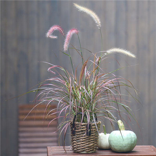 Pennisetum alopecuroides 'Hameln' ist ein beliebtes Ziergras, das mit seinen buschigen, flauschigen Ähren an kleine Flaschenbürsten erinnert. Daher auch der Name Lampenputzergras. Seine grünen überhängenden Halme, die sich im Herbst Goldgelb färben, bringen sanfte Bewegung in Beet und Kübel und passen perfekt zum natürlichen Look des "RUSTY FLAIR"-Trends. Das Lampenputzergras liebt einen sonnigen bis halbschattigen
