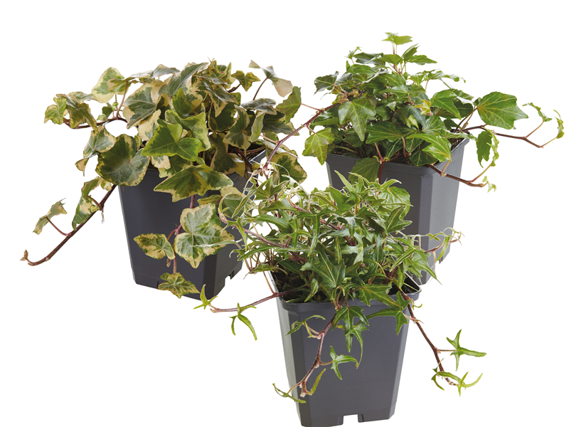 Efeu (Hedera helix) ist ein vielseitiger Blattschmuck-Klassiker mit immergrünen, teils panaschierten Blättern. Als Bodendecker, Ampel- oder Kübelpflanze sorgt er ganzjährig für Struktur. Pflegeleicht und anspruchslos gedeiht er an schattigen bis halbschattigen Standorten in durchlässigem Boden mit regelmäßigen, geringen Wassergaben.