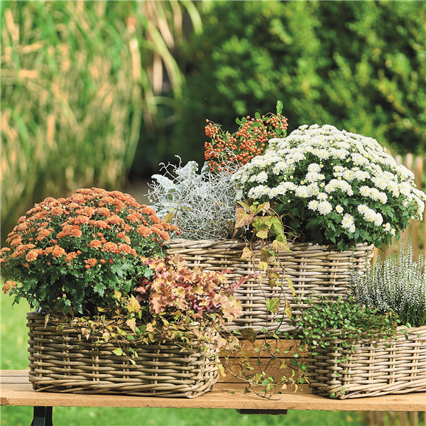 Warme Braun- und Rosttöne in Kombination mit sattem Grün bringen eine gemütliche, erdige Stimmung in den Garten. Edle Blüh- und Blattschmuckpflanzen, dezente Accessoires und natürliche Materialien sorgen für einen herbstlichen Look mit Stil und Natürlichkeit.