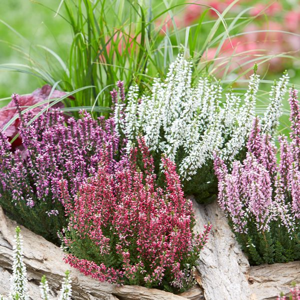 Heidepflanzen gibt es in einer Vielzahl verschiedenster Sorten und Arten, die mit grünem oder auch buntem Laub und Blüten in Violett-, Rot- und Rosatönen bis hin zu Weiß aufwarten. Die meisten von ihnen blühen im späten Sommer. So z.B. die fälschlicherweise als „Erika” in deutschen Schlagern besungene Knospenblüherheide oder Besenheide (Calluna vulgaris). Sie sehen im blühenden Zustand wunderschön aus, doch leider währt die Blühzeit nicht allzu lange. Die *„echte” Erika* dagegen ist die prächtige herbstblühende Glockenheide oder Topfheide (Erica gracilis). Wegen ihrer farbenprächtigen Blüten eignet sie sich hervorragend für den farbenfrohen Herbstgarten.
