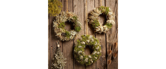 Besonders natürlich wirken Türkränze aus Stroh, Gräsern und Moos. Bei diesen Kränzen können Sie gerne klotzen statt kleckern: Hängt man mehrere in unterschiedlichen Höhen auf, wirkt das gar nicht übertrieben.