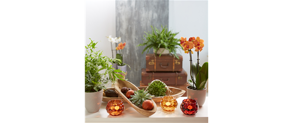 Das Natural-Chic-Design wird mit Holzdekorationen perfekt unterstrichen. Der Naturstoff Holz wirkt z.B. neben der Malayenblume (Phalaenopsis-Hybride) modern, aber auch gleichzeitig traditionell. Die Malayenblume ist eine Blühpflanze, die durch ihr extravagantes Erscheinungsbild die Natürlichkeit dieses Trendthemas auflockert. An hellen Plätzen fühlt sie sich ohne direkte Sonneneinstrahlung am wohlsten. Düngen Sie in den Wintermonaten, damit die Pflanze gestärkt bleibt und weiterhin schöne Blüten bildet. Unsere Empfehlung ist der grün erleben ORCHIDEENDüNGER. Mit Tauchbädern einmal wöchentlich wird die Phalaenopsis ausreichend gewässert.