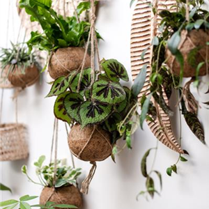 Ihr Fensterbrett, Tisch und Regal sind schon mit Pflanzen geschmückt, Sie haben aber noch nicht genug? Dann können Sie ja an die Decke ausweichen. Hängen Sie Ihre Pflanzen einfach im Ampeltopf auf. Die Option ,Aufhängen‘ können Sie auch wählen, wenn Sie Fensterbrett und Co. nicht mit störenden Töpfen vollstellen wollen. Hänge- und Ampelpflanzen eignen sich in jedem Fall perfekt dafür. Ihre baumelnden Triebe sind eine gelungene Abwechslung. Und wenn Sie keine Pflanzen an der Decke wollen: Platzieren Sie die reizenden Hängepflanzen einfach auf Regalen.