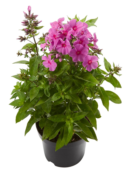 Die Hohe Flammenblume (Phlox paniculata) gehört mit ihrer Farbenpracht zu den beliebtesten Sommerstauden bei Mensch und Insekten. Die Staude, die zu den Sperrkrautgewächsen gehört, bildet dichte Büsche mit aufrechten hohen Trieben. Mit ihren vielen leuchtenden Blüten in Violett, Rosa, Rot, Weiß und mehrfarbig ist sie eine wichtige Nektar- und Pollenpflanze. Da ihre Wurzeln flach unter der Erde liegen, können diese bei lang an-haltender Trockenheit beschädigt werden. In den heißen Sommermonaten ist es darum ratsam, die Pflanze häufiger und kräftig zu gießen. An einem sonnigen Standort blüht der Phlox von Juni bis September.