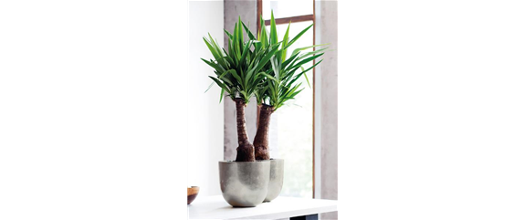 Die widerstandsfähige Palmlilie 'Maya tree' (Yucca elephantipes) ist den meisten auch als Yucca-Palme bekannt. An einem sonnigen Standort kann sie bis zu 2 m groß werden und problemlos mit warmen und trockenen Bedingungen umgehen, da sie in freier Natur im Süden der USA und der Karibik wächst. Den Sommer verbringt die Palmlilie auch gerne im Freien. Gießen Sie sie mäßig, Staunässe kann ihr schaden.