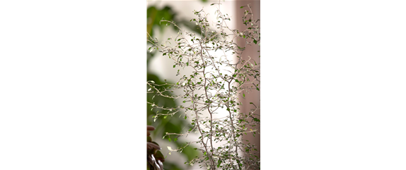 Der Zickzack-Strauch (Corokia cotoneaster) ist am anderen Ende der Welt – in Neuseeland – beheimatet. Aufgrund seiner bizarren Triebe und seines außergewöhnlichen Erscheinungsbildes ist er eine absolute Trendpflanze. Er steht gern kühl und hell, aber ohne direkte Sonneneinstrahlung. Die Erde darf nicht vollständig austrocknen, Staunässe sollte aber vermieden werden.