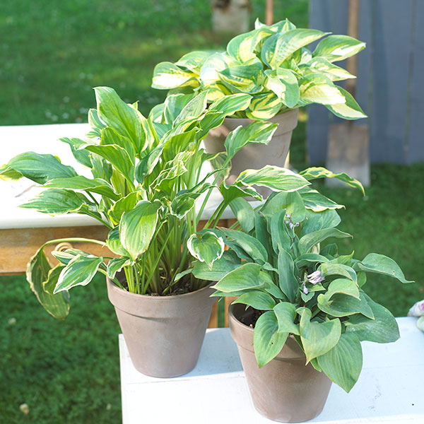 Alleskönner, die sowohl Sonne wie Schatten vertragen, sind die weiße Schneeflockenblume, Miniveilchen für den Frühsommer und Herbst oder "Strukturpflanzen" wie Efeu mit dekorativen gelb-grün gefleckten Blättern, Gundermann und Harfenstrauch mit grün-weiß gefleckten Blättern. Auch mit pflegeleichten Zimmerpflanzen wie Grünlilie oder mit schönen Blattstauden wie grün-weiß gestreiften Funkien oder Purpurglöckchen mit rostroten Blättern verwandeln sich Gefäße und Balkonkästen in ein edel wirkendes Pflanzenparadies.