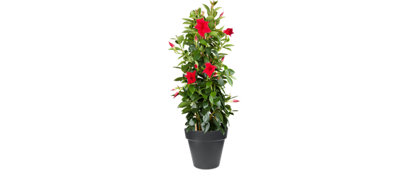 Sommerliche Farbakzente auf dem Balkon setzt die Dipladenien-Pyramide (Mandevilla). Dipladenien stammen aus dem Dschungel Südamerikas und sind als Topf- oder Hänge-pflanze sehr beliebt. Die Schlingpflanze bevorzugt einen warmen und sonnigen Standort, nur pralle Mittagssonne mag sie nicht.
